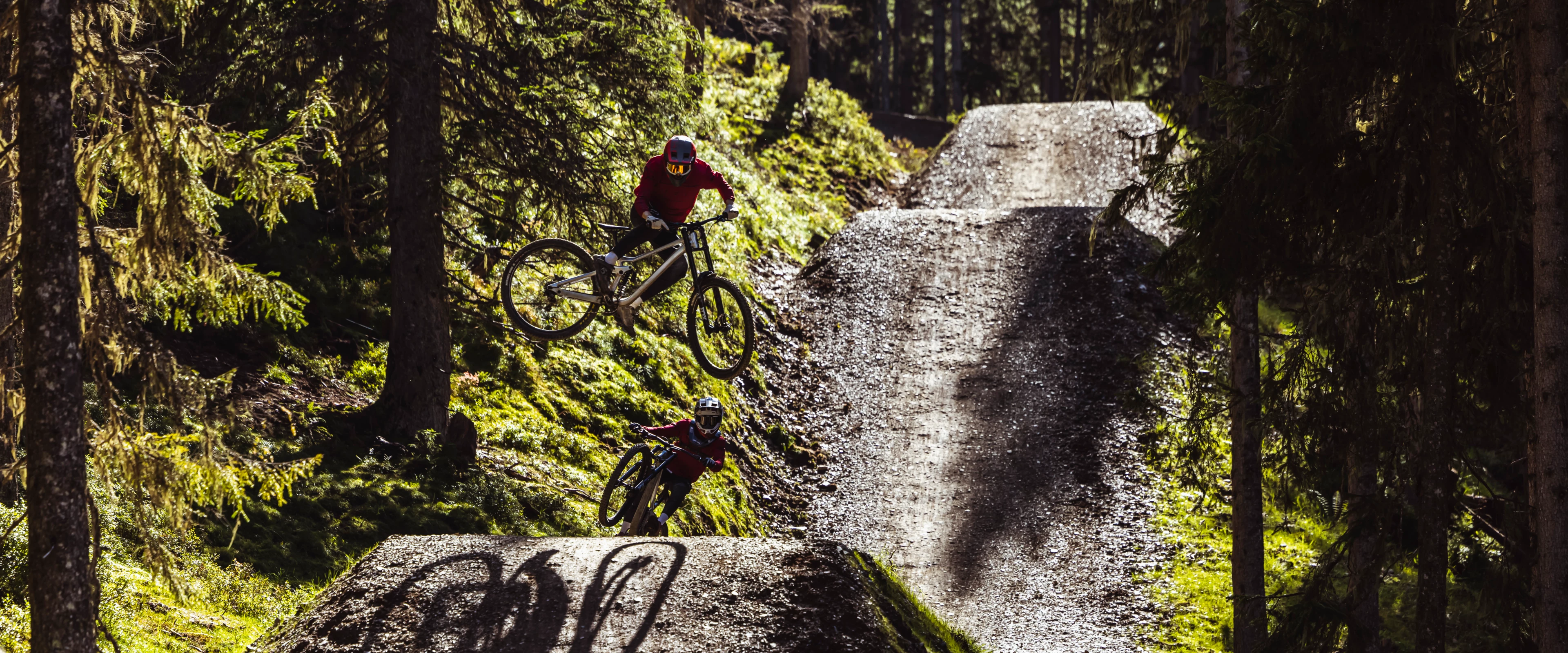 With a width of about 2,5 meters, the track winds from the Asitz lift top station through the forest, with tables, rollers and wallrides down to the Flow Link.